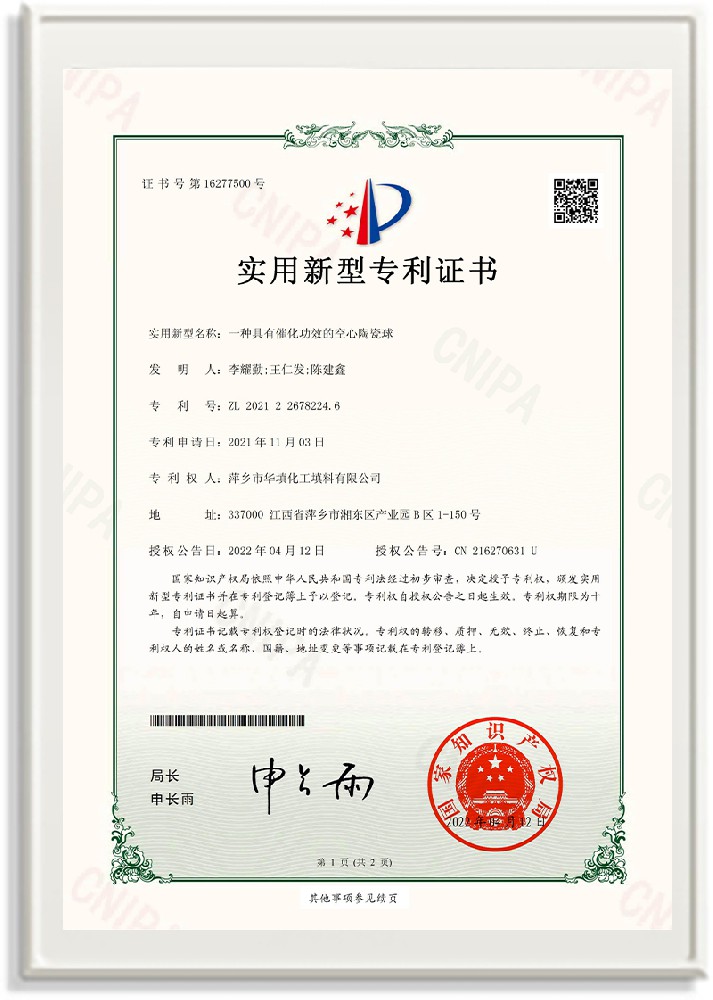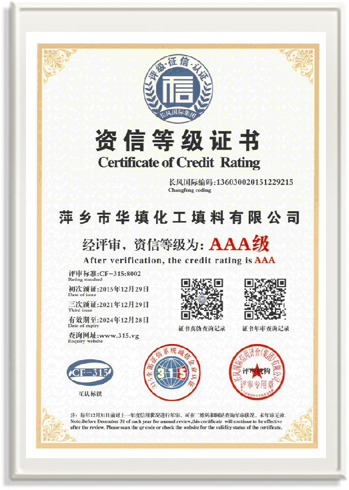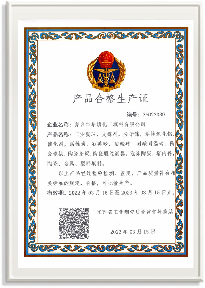 萍鄉(xiāng)市華填化工填料有限公司,位于320國(guó)道、109國(guó)道、浙贛鐵路、昌金高速公路貫穿其中,交通便利,是江西西部一顆燦爛明珠,創(chuàng)建于20世紀(jì)70年代初期,是中國(guó)石油天然氣股份有限公司“能源一號(hào)網(wǎng)”會(huì)員企業(yè)、中國(guó)石化物資采購(gòu)電子商務(wù)網(wǎng)絡(luò)和中國(guó)海洋石油總公司采辦業(yè)務(wù)系統(tǒng)成員單位,是上海大學(xué)江西材料基因組工程產(chǎn)業(yè)研究院工業(yè)陶瓷產(chǎn)業(yè)創(chuàng)新聯(lián)盟基地,且通過(guò)ISO9001:2015質(zhì)量管理體系、ISO14001:2015環(huán)境管理體系、ISO45001:2018職業(yè)健康安全管理體系認(rèn)證的化工填料生產(chǎn)企業(yè)。公司擁有陶瓷、塑料、金屬填料、催化劑、活性氧化鋁、分子篩等產(chǎn)品生產(chǎn)線(xiàn),現(xiàn)有固定資產(chǎn)3616萬(wàn)元,占地面積3.8萬(wàn)平方米。公司具有悠久的生產(chǎn)歷史、雄厚的技術(shù)力量和先進(jìn)的生產(chǎn)工藝設(shè)備,可生產(chǎn)工業(yè)瓷球(支撐劑)、陶瓷、金屬、塑料質(zhì)的規(guī)整、散堆化工填料及分子篩、催化劑、生化濾料、活性氧化鋁、石化助劑、活性炭、環(huán)保材料、耐火材料等系列的200多種規(guī)格型號(hào)產(chǎn)品。